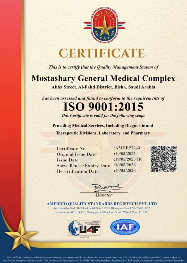 تقديم رعاية طبية متكاملة وموثوقة، بأعلى معايير الجودة والسلامة، عبر نخبة من الأطباء والاخصائيين والتقنيات الحديثة، لنكون شركاء في صحة وراحة مرضانا داخل المجتمع.