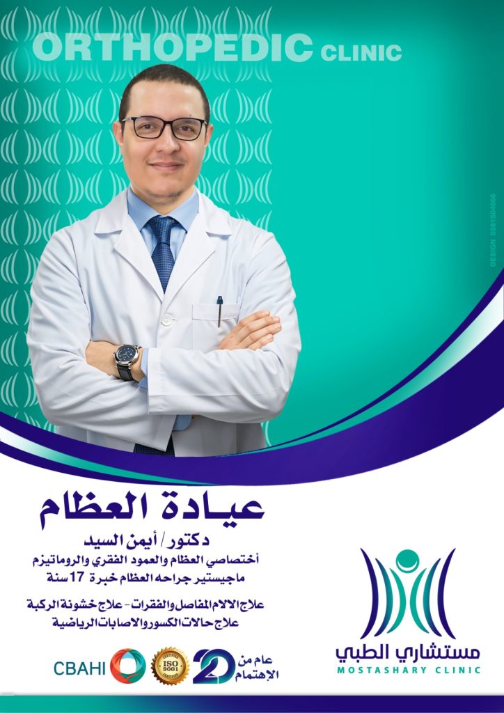 | العظام | عيادة العظام | د/ ايمن السيد | اخصائى العظام والعمود الفقري والروماتيزم - ماجسيتير جراحة العظام | 17 عام | علاج الالام المفاصل والفقرات -علاج خشونة الركبة - علاج حالات الكسور والاصابات الرياضية |