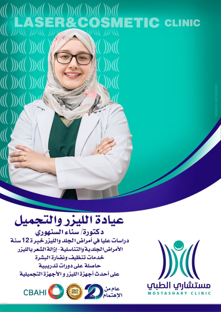 | الجلدية والليزر والتجميل | عيادة الليزر والتجميل | د/ سناء السنهورى | دراسات عليا في امراض الجلد والليزر | 9 سنوات | دبلومة الامراض الجلدية والتناسلية والليزر - علاج الامراض الجلدية الحادة والمزمنة - حقن البوتكس والفيلر والبلازما - التقشير الكيميائى والبارد |