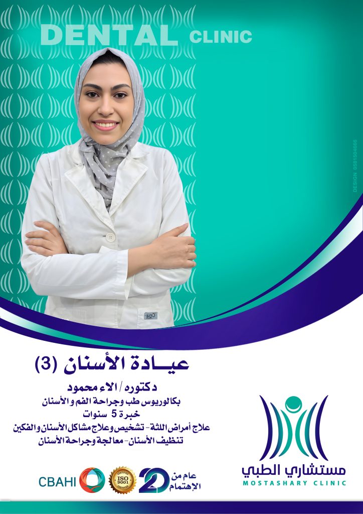 | الاسنان | عيادة الاسنان- 2 | د/ الاء عبدالقادر | ماجستير تقويم الاسنان | 12 عام | تركيب جميع انواع تقويم الاسنان - تقويم الاسنان الشفاف - تقويم الاسنان للاطفال والبالغين |